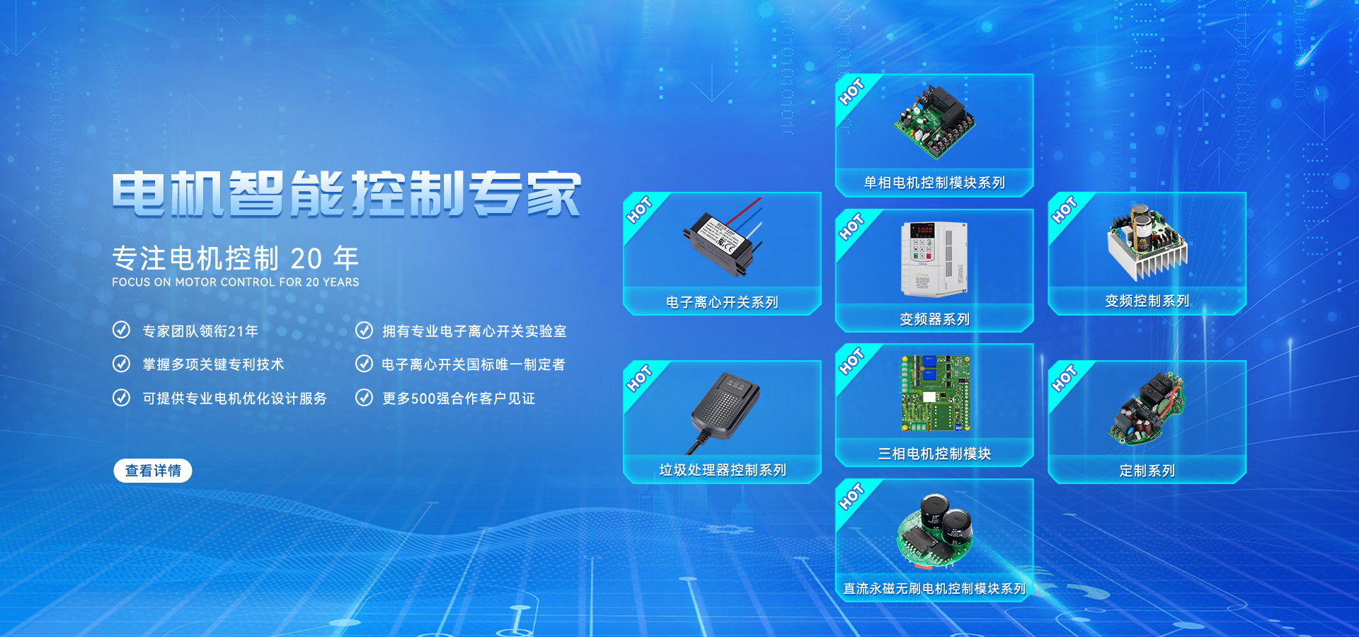 電機(jī)控制首選深圳復(fù)興偉業(yè)——主營(yíng)電子離心開(kāi)關(guān)、變頻模塊系列、變頻器系列、直流無(wú)刷驅(qū)動(dòng)控制模塊系列、三相電機(jī)控制系列、單相電機(jī)控制模塊系列、客戶定制系列等,產(chǎn)品覆蓋全球。服務(wù)熱線:0755-26063505